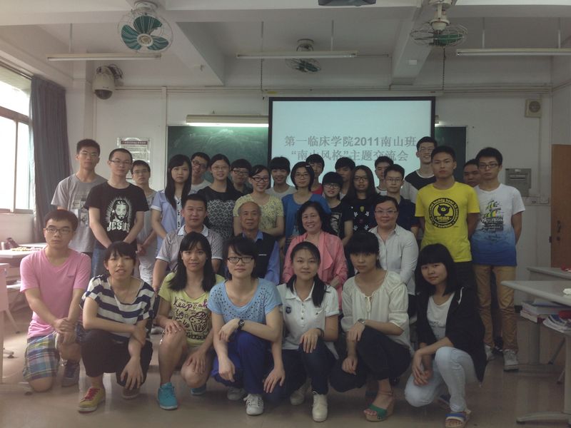 5月13日,南山学院在南校区召开“学习南山精神,传承南山风格,争当南山优秀学员”座谈会。附一院关工委苏桂彪、丘丽冰同志;广东省抗击非典一等功臣、广州呼吸疾病研究所ICU陈思蓓主任;学生科李树学老师及2011级南山班全体同学参加会议。