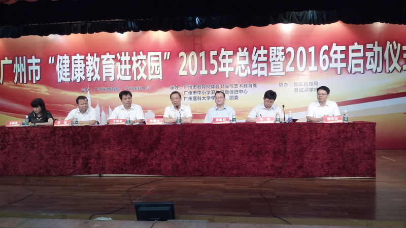 为将“健康教育进校园”这一品牌做大做强,2016年5月9日,广州市“健康教育进校园”2015年总结暨2016年启动仪式在广州医科大学举行。中国工程院钟南山院士,广州市教育局屈哨兵局长、吴强副局长,北京大学儿童青少年卫生研究所马军所长,广州医科大学王新华校长、罗健东副校长,广州市教育局体育卫生与艺术处、广州市中小学卫生健康促进中心领导,广州市各对接学校教师代表,广州医科大学学生处、团委、各学院师生代表共400多人参加。会议由广州市教育局体育卫生与艺术处丘毅清处长主持。