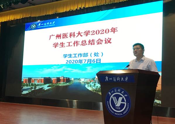7月6日下午,学校在番禺校区学生活动中心演艺大厅召开2020年上半年学生工作总结会议,学校赵醒村副校长,各学院分管学生工作领导,学生工作部全体人员、全体辅导员参加了会议。会议由学生工作部陈伟民部长主持。