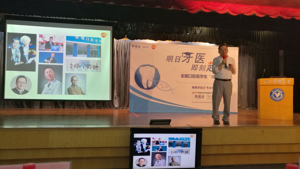 GSK赖湘银女士进行了牙本质敏感和假牙护理专题报告。李强总经理给同学们详细介绍了口腔健康科普创作大赛的具体赛点要求,鼓励同学们积极参与其中,争取获优秀成绩,争取机会参加10月份于上海召开的口腔医学会年会。此外,李强总经理还重点给同学们讲了一堂别开生面的职业规划课,他用霍兰德职业性格测试为同学们进行测试,对不同性格类型同学未来从事的口腔专科方向进行了生动的分析和讲解,讲授性格类型和专业就业方向的关联,引起了同学们的积极反响,场面非常热烈。