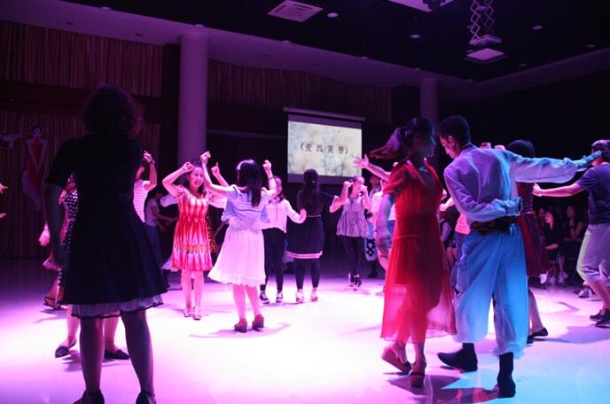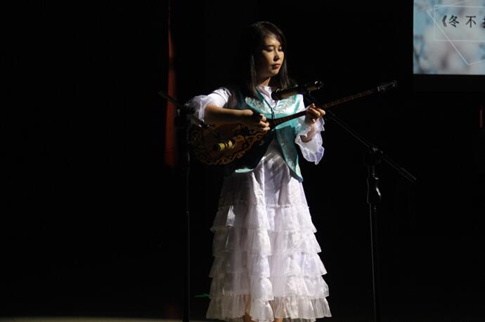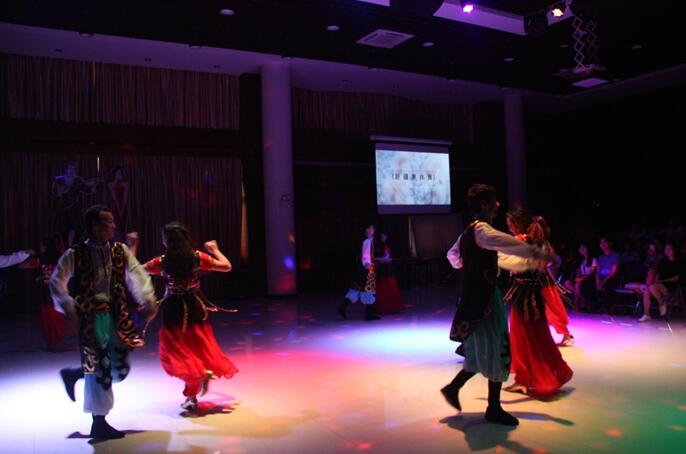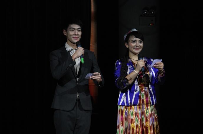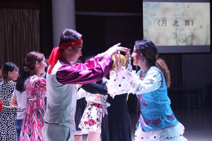 晚会伊始,由街舞队带来的热辣劲舞瞬间点燃了现场观众的热情,引来全场欢呼。新疆生带来的新疆集体舞音乐轻快,舞步悠扬,让在场的同学们领略到了异样的文化风采。欣赏完优美的舞步,《萨马舞》和《月光舞》的互动,邀请台下跃跃欲试的观众们也到舞台前与新疆同学们一起感受了新疆舞姿的魅力。舞曲方罢,新疆特有的乐器冬不拉悠扬的乐声在演艺厅缓缓升起,动听的歌声,曼妙的旋律,现场观众细细聆听,体味着这音乐的神奇。书法社带来的书法表演,行云流水,悠然自得,让新疆的同学们也领略了汉族文化的博大精深。哈萨克族民族风情在新疆同学舞蹈《黑走马》的热情演绎下表现得酣畅淋漓,具有节奏感的表演,舞者默契的配合,脸上洋溢着的幸福笑容,无一不在感染着观众。晚会不知不觉就到了尾声,随着《麦西莱普》音乐的响起,新疆同学纷纷走上舞台邀请现场老师、汉族同学共舞,平时略显羞涩的汉族学生仿佛受到鼓舞,一个个涌入舞池,欢快地跳起了新疆舞。这场晚会,为现场观众带来了一场视觉盛宴,更像文化的熔炉,汉族同学和新疆的伙伴一起用舞蹈,用歌声去交融,去体验,去理解,去包容不同的文化。